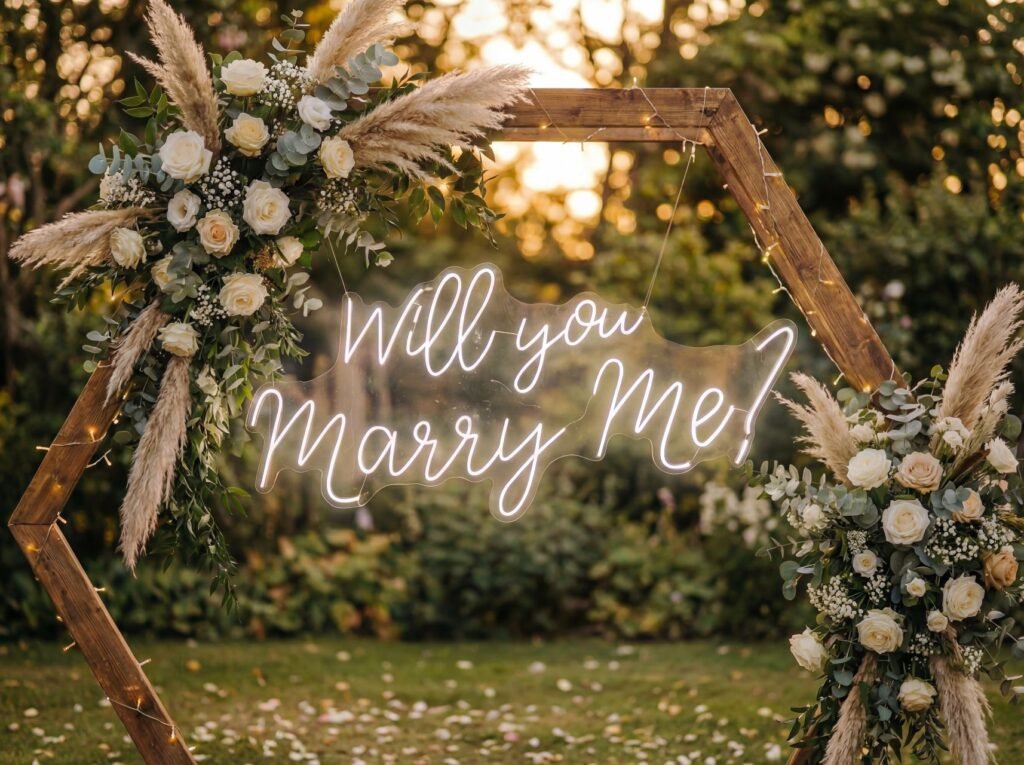 Marry Me Sign was built for couples who want to make their proposal unforgettable without overcomplicating it. We bring premium Marry Me signs, florals, and decor together in one place so you can plan, rent, and design with confidence.