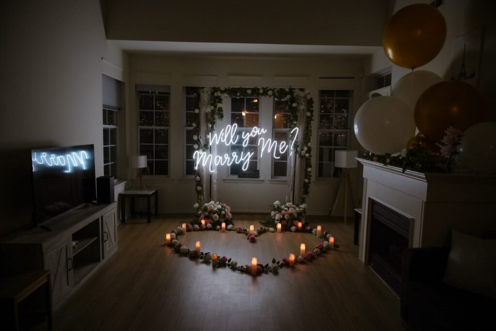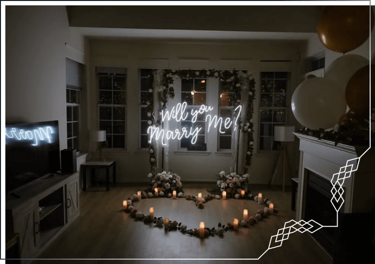 Every setup we create celebrates love, creativity, and design. Explore our gallery to see how couples transformed their spaces with the proposal rentals from Marry Me Sign.