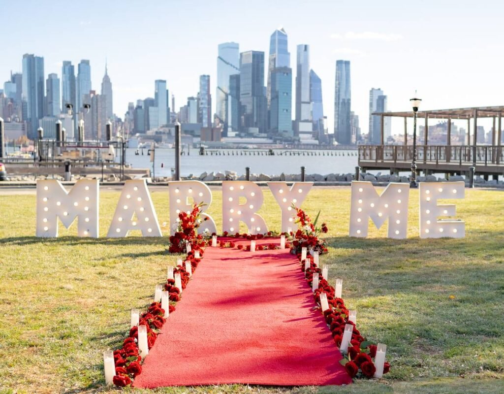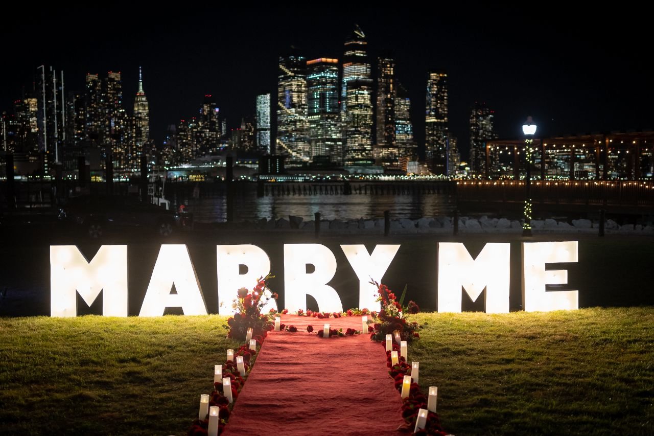 Make a bold statement with our “Marry Me” letters. Available in multiple sizes and finishes, from glowing bulbs to modern neon, they bring structure and depth to any venue. These pieces create an unmistakable focal point and pair seamlessly with candles, florals, and rose pathways for a polished, romantic setup.