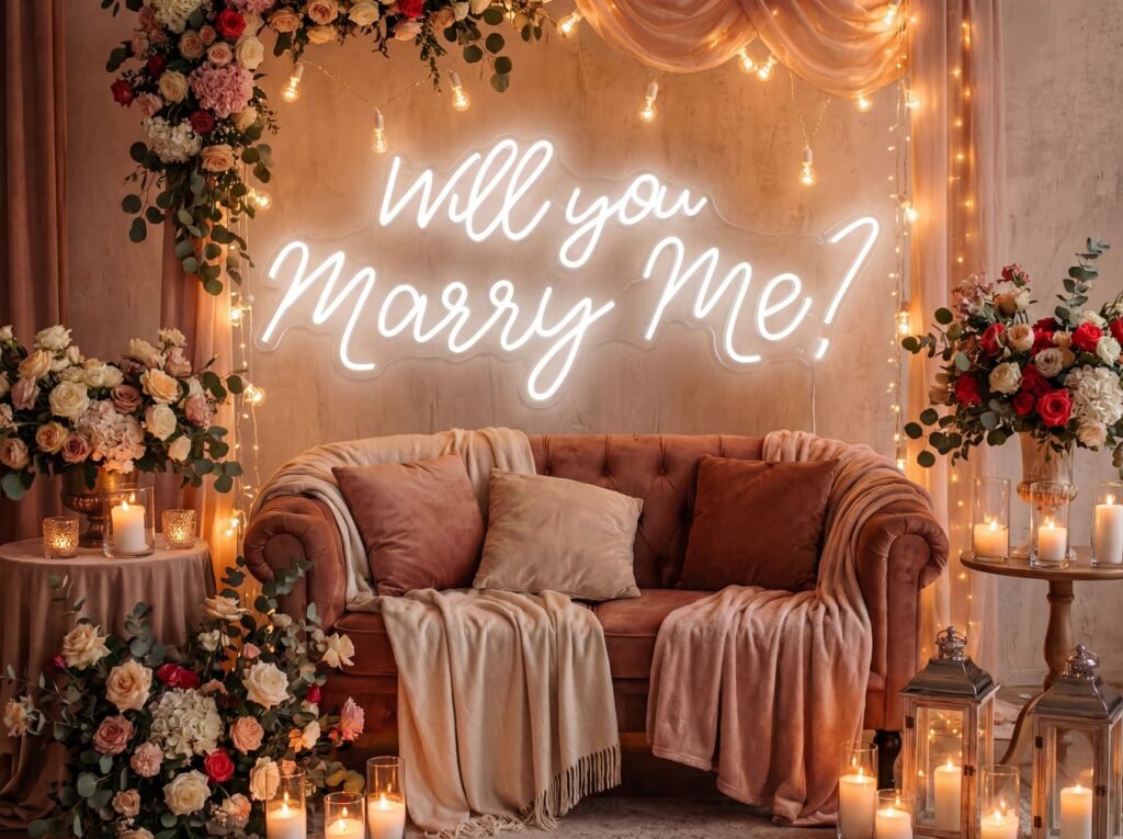 Light up your moment with our selection of premium neon signs. Choose meaningful phrases like “Will You Marry Me?”, “It Was Always You,” or “You and I Forever.” Each sign adds instant warmth, character, and definition to your setup. Ideal for proposals, anniversaries, photoshoots, and DIY celebrations that need a standout glow.